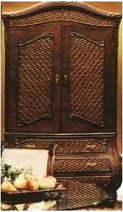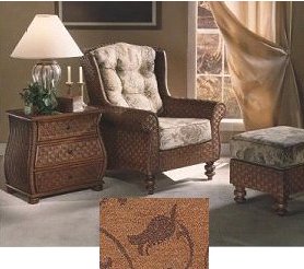 Wingback chair with ottoman and bombe chest and fabric sample |