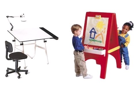 Alvin Creative Center Drafting Table and Chair; Just Little Tikes Easel |